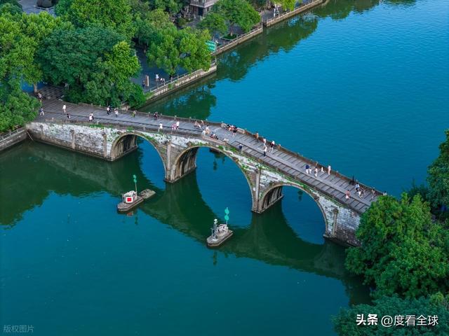 历经数百年的风雨侵蚀和洪水冲击,桥身依然完好无损,足以见得当时施工的严谨与工艺的高超。桥面由青石板铺就,由于常年的行人踩踏,石板表面变得光滑细腻,留下了深浅不一的足迹,那是岁月走过的痕迹,也是历史留下的印记。